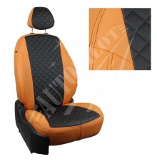 Чехлы на сиденья, рисунок ромб (Черные с оранжевым) для Kia Rio IV седан /хэтчб. (X-Line / X) (40/60) с 17г.