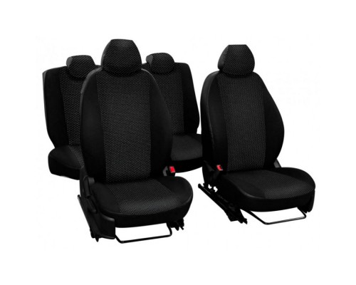 Чехлы на сиденья К-1 произведены из материалов Экокожа+Жаккард. Боковые части авто чехлов и задняя часть спинки сидений из Экокожи толщиной 1,3 мм, середина чехлов на сиденья состоит из прочного материала Жаккард. Бывают партии авто чехлов где будет вышит логотип марки автомобиля.