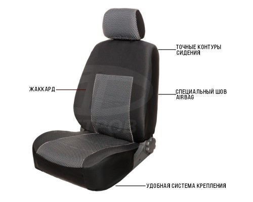 Чехлы на сиденья из жаккарда "К-1" имеют привлекательный дизайн и хорошо сочетаются с интерьером любого автомобиля. Довольно быстро устанавливаются на сиденья и обеспечивают максимальную защиту обивки сидений и комфорт для водителя во время поездки.